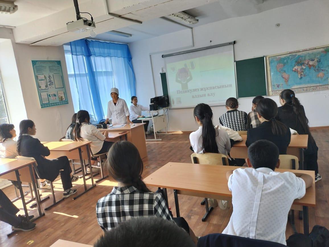 Жетісу облысы Қаратал ауданы "Ж.Молдағалиев атындағы МДШО бар орта мектеп Қожбан БМ" КММ.2022 жылдың 20-21қыркүйек аралығында Педикулездің алдын алу тақырыбында жоғары сынып оқушыларына Былшанова З.медбике дәріс оқыды.Педикулез ауруының таралу жолдары,симптомдары,құтылу жолдары туралы ескертілді.