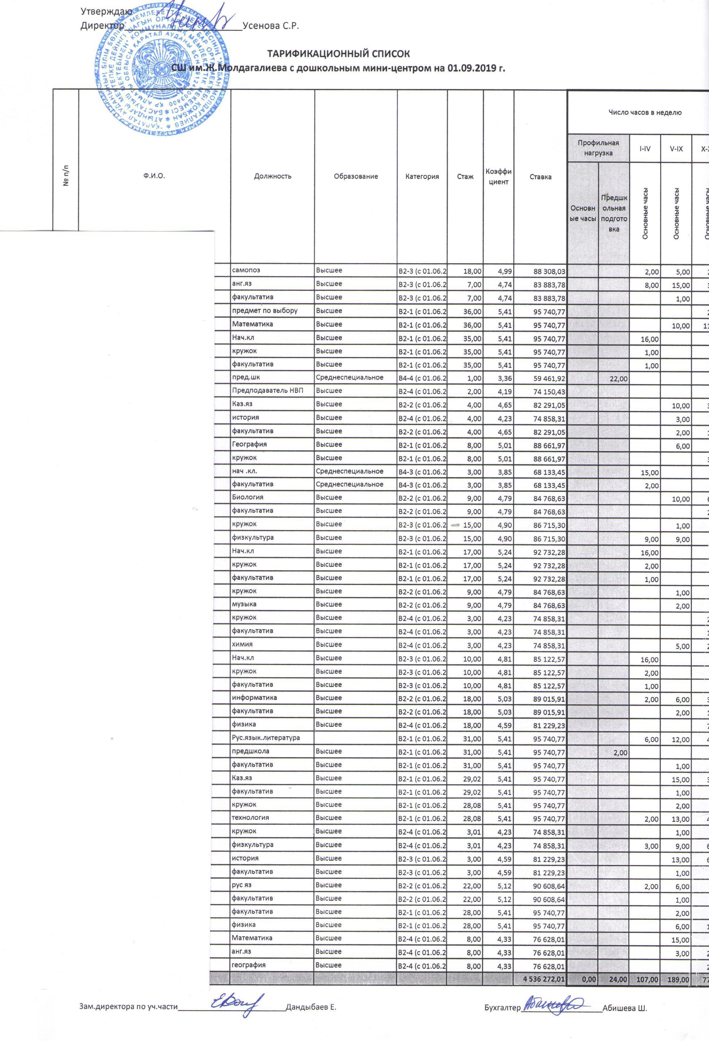 17 октябрь 2019 0 1 2 3 4 5 "Ж.Молдағалиев атындағы МДШО бар орта мектебі Қожбан БМ" КММ-нің 2019-2020 оқу жылына арналған тариффикациялық тізімі