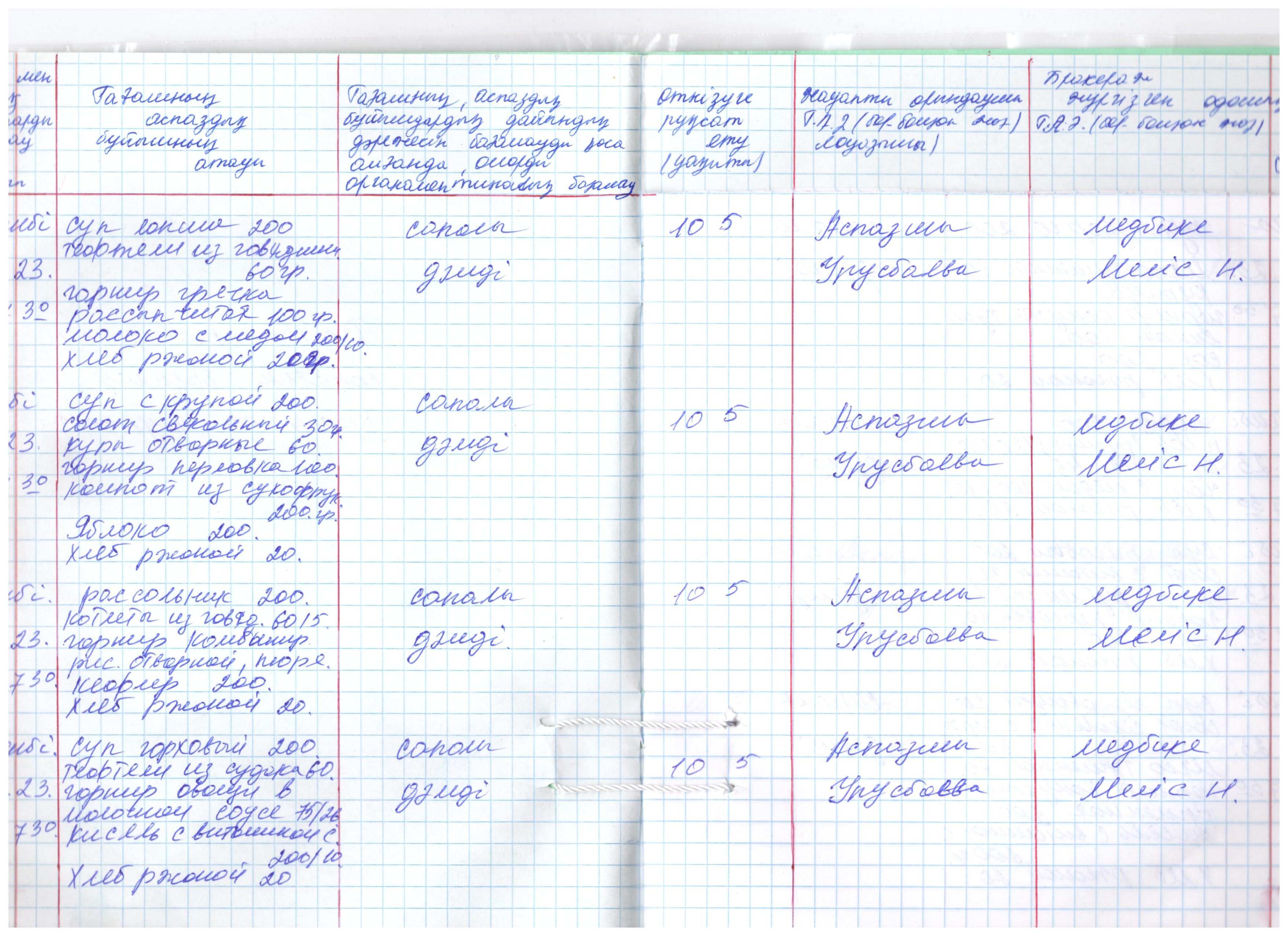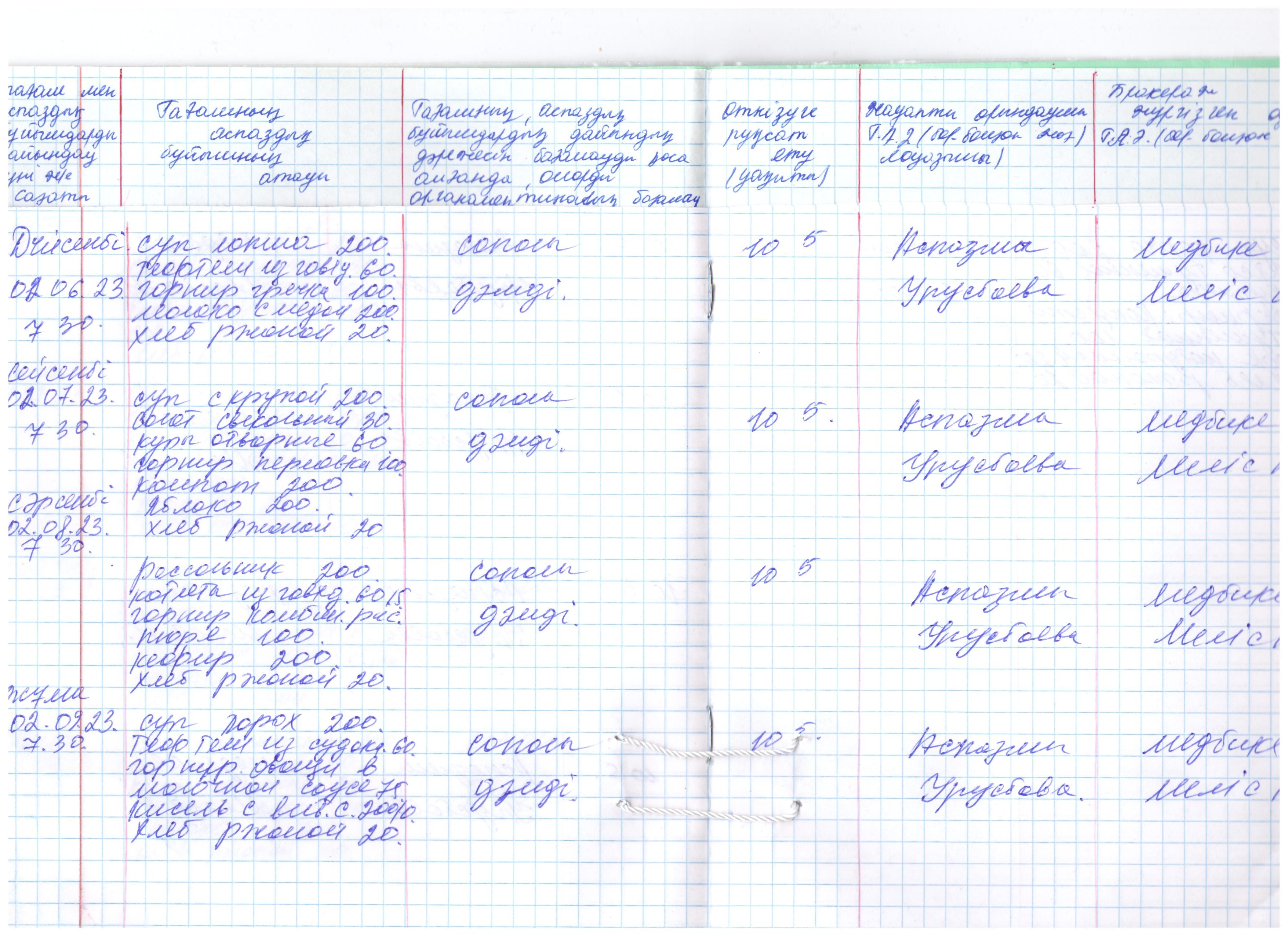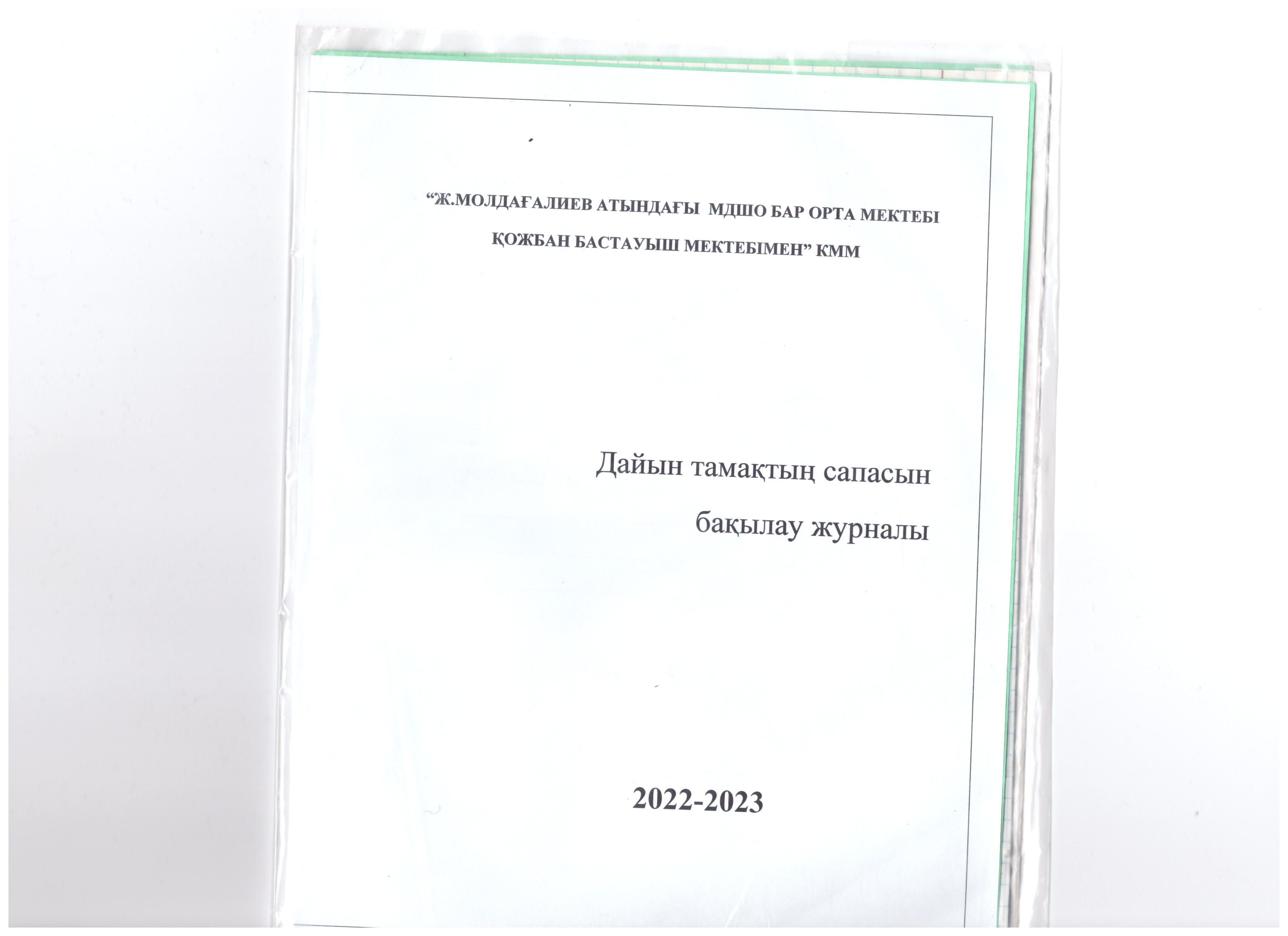 Дайын тамақтың сапасын бақылау брокераж журналы