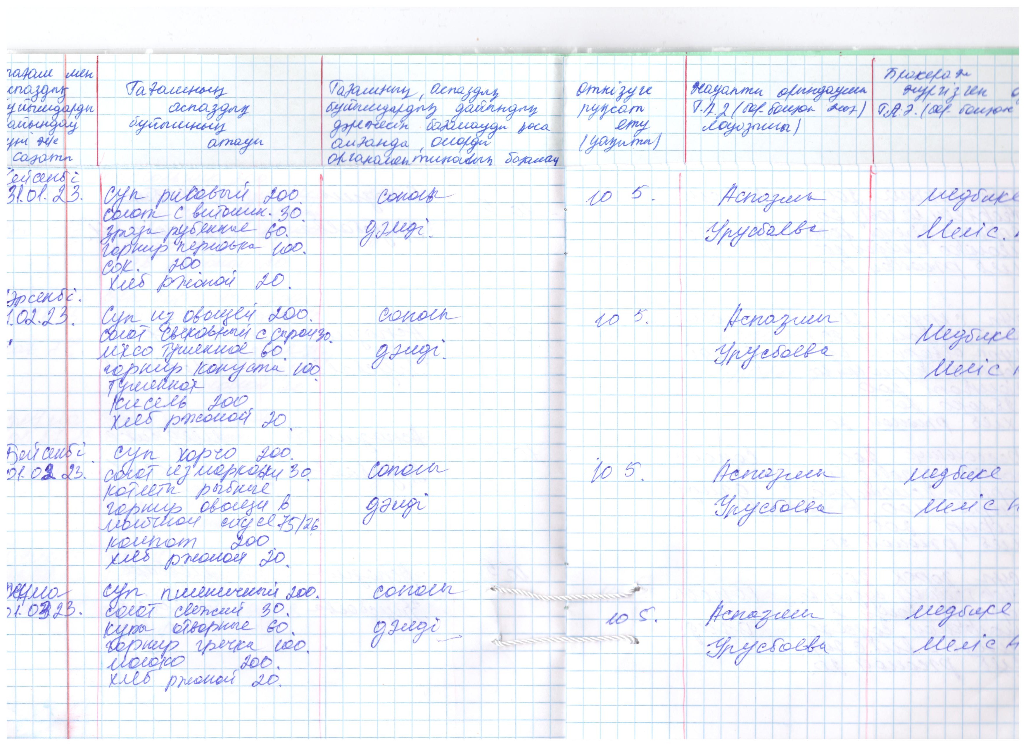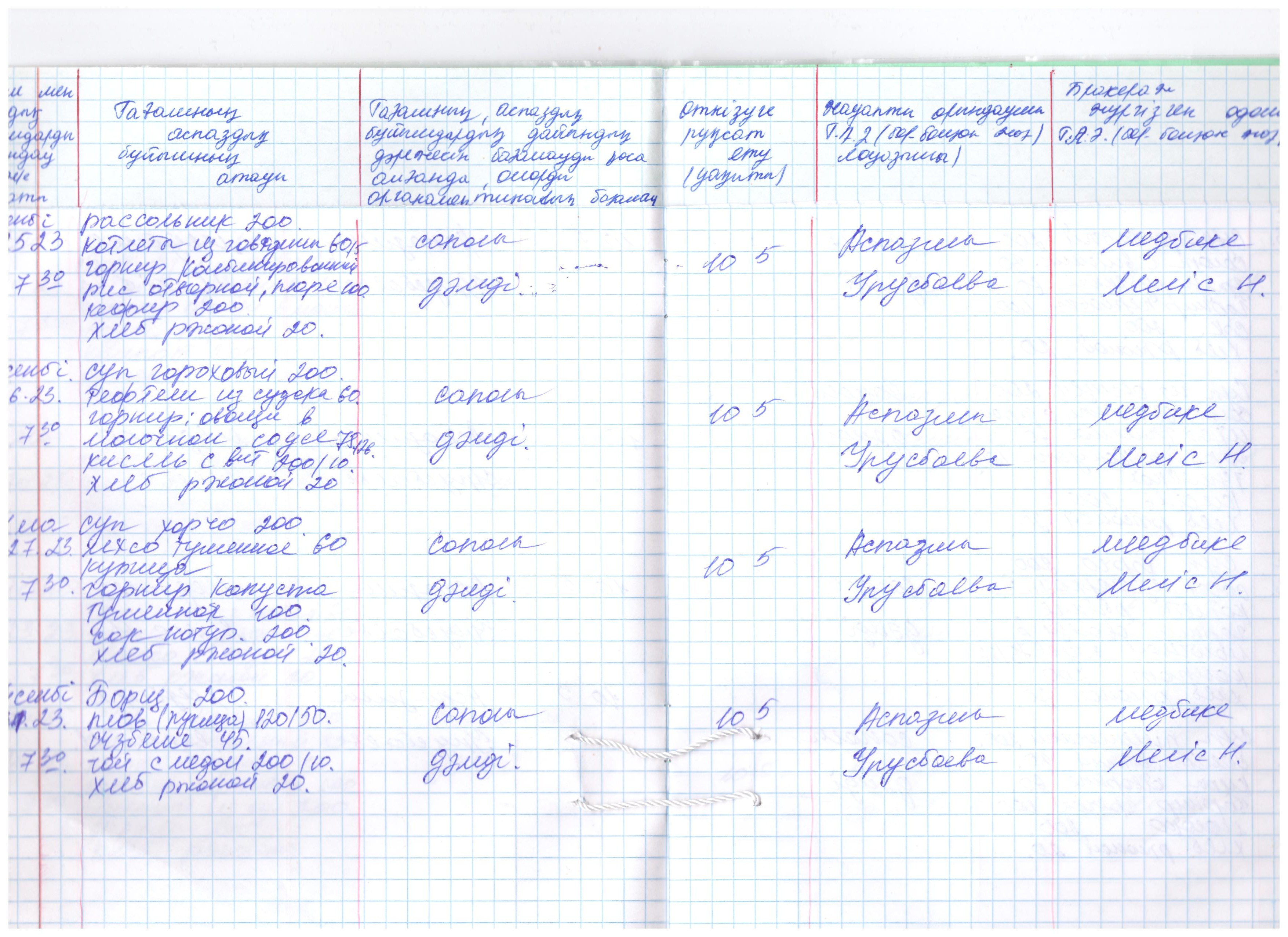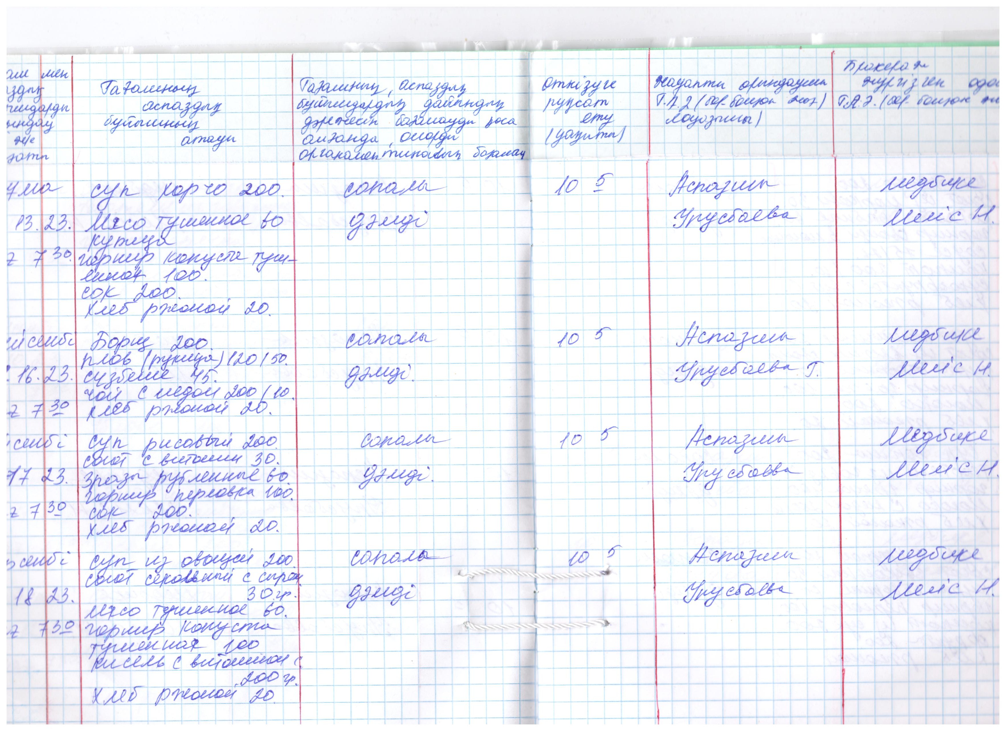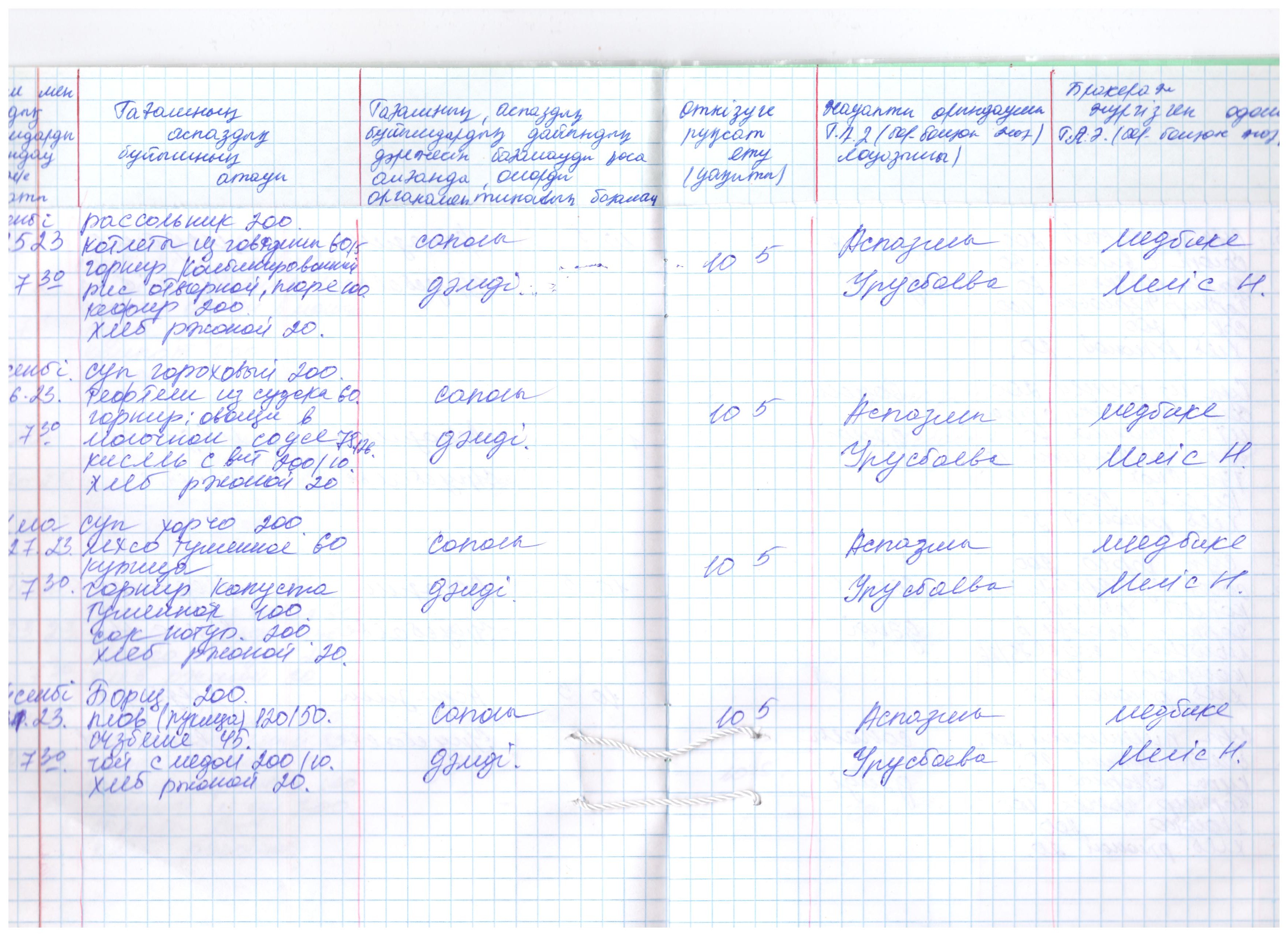 Дайын тамақтың сапасын бақылау брокераж журналы